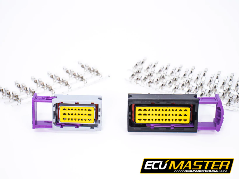 EMU Black Connector Kit. One set of gray and black connector housings with 63 terminals for the ECUMaster EMU Black (picture not accurate, this item includes a black 39 pin connector and gray 24 pin connector and full set of terminals)